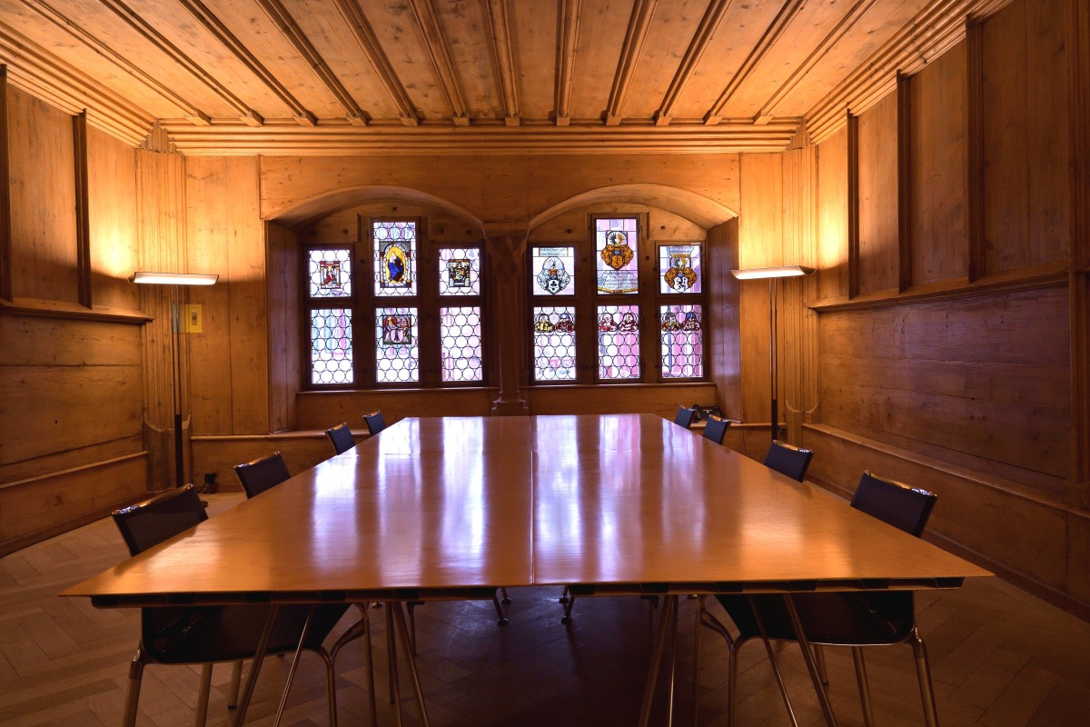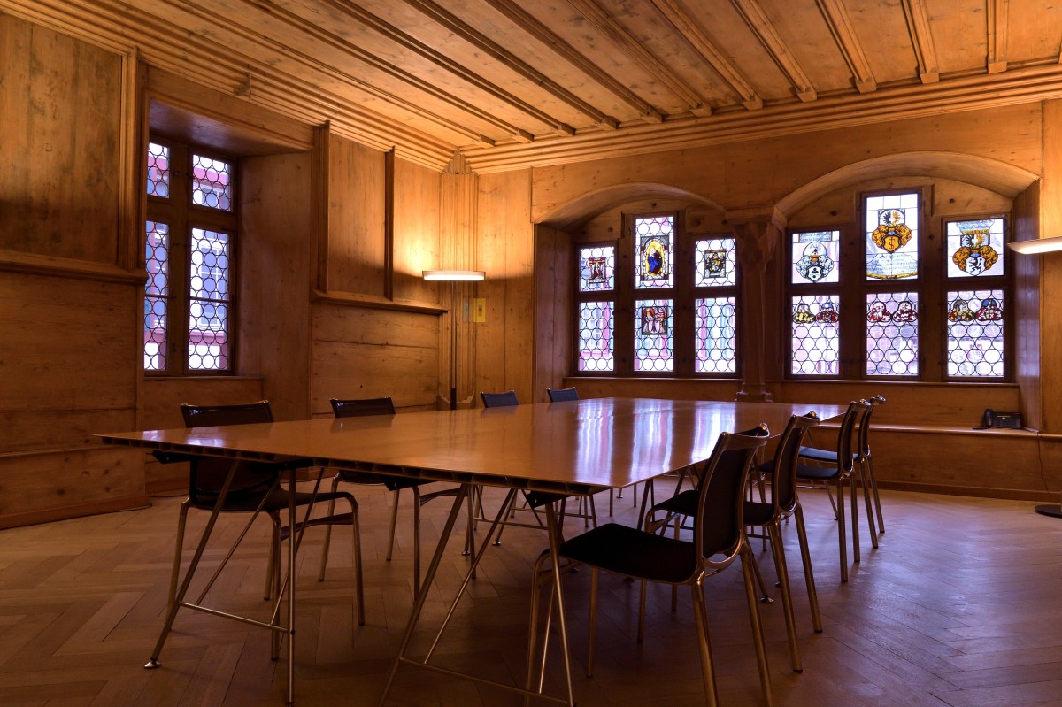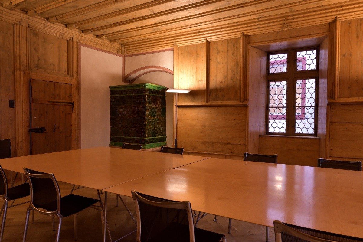 Im ehemaligen Wohnhaus des Bischofs am Eckturm der Stadtbefestigung, im sogenannten „Grossen Haus“, wurde in der Klosterzeit das Laienrefektorium für die Laienbrüder eingerichtet. 1507 und 1526/27 wurde das „Grosse Haus“ vom Prior Hieronymus Zscheckenbürlin renoviert. Das Laienrefektorium liegt über dem Mönchsrefektorium im 1. Stock. Im 19. Jh. diente es dem Waisenvater als Arbeitszimmer. 1996 wurde der Raum renoviert und die Farben der verschiedenen Anstriche entfernt, so ist er heute wieder in seiner urspünglichen Ausgestaltung.